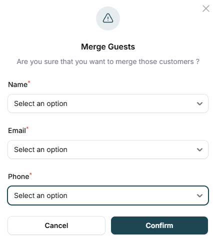 To merge guest profiles, simply select the guests you want to combine and click on ‘Merge‘.