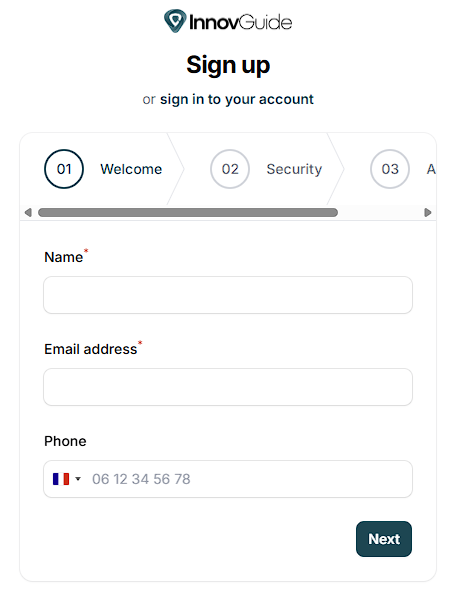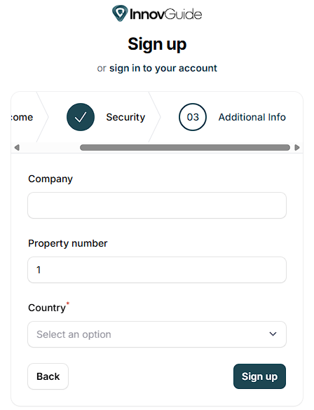 In this step, you can add valuable details such as Company Name, Property Number, and Country to personalize your InnovGuide experience.