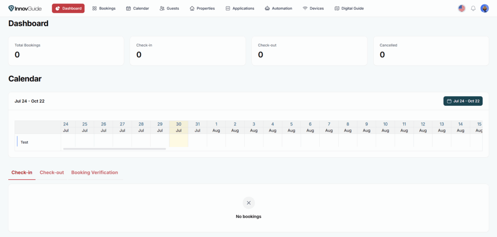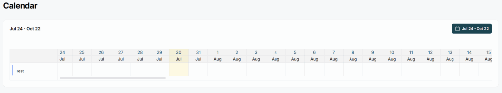 The calendar shows a timeline of your property’s bookings over a selected period. It’s perfect for quickly spotting availability or identifying busy periods.