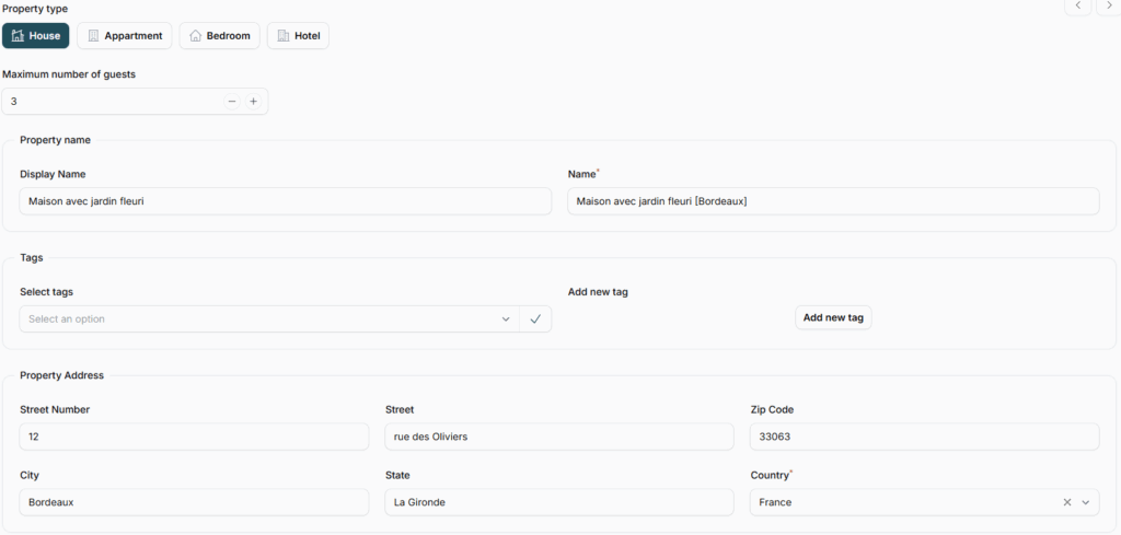 • Map Interface: Simply click on the map to precisely place your property. This ensures guests receive accurate directions and navigation.