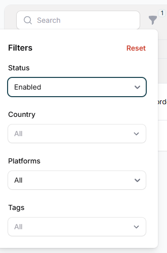 • Status (Enabled or Disabled)