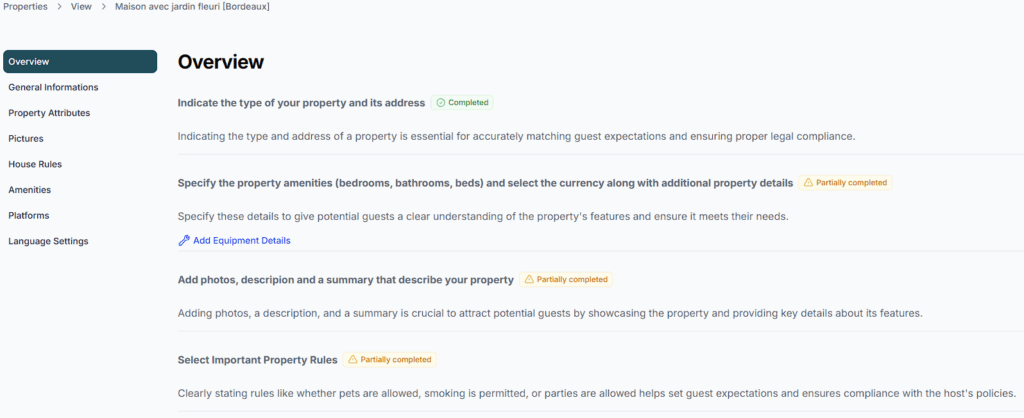 In the Space Overview, you can introduce your property in a few words, highlighting its charm, layout, and standout features. This short description helps guests quickly understand what makes your place special.