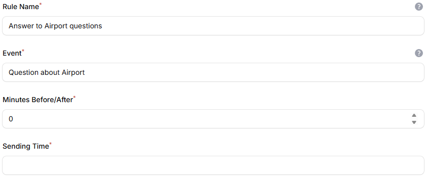 You still need to choose a name for your rule, but you’ll also be required to define the triggering event and the message sending time.