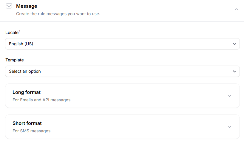 Choose the appropriate message format: use a longer version for emails and a shorter one for SMS. You can also select a template to ensure the format matches the communication channel you’ve chosen.