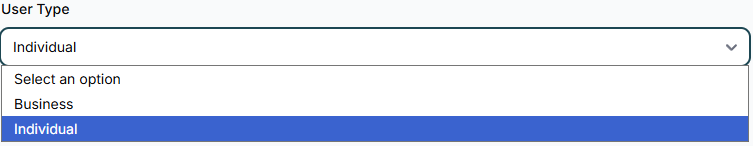 The “Individual” option doesn’t require you to fill in specific company details. It’s the most common choice for users who don’t yet have a registered business.